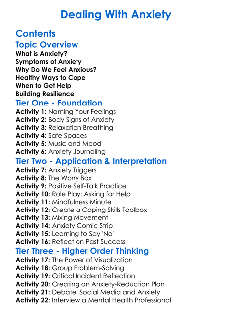 Dealing With Anxiety Worksheet Activity Booklet