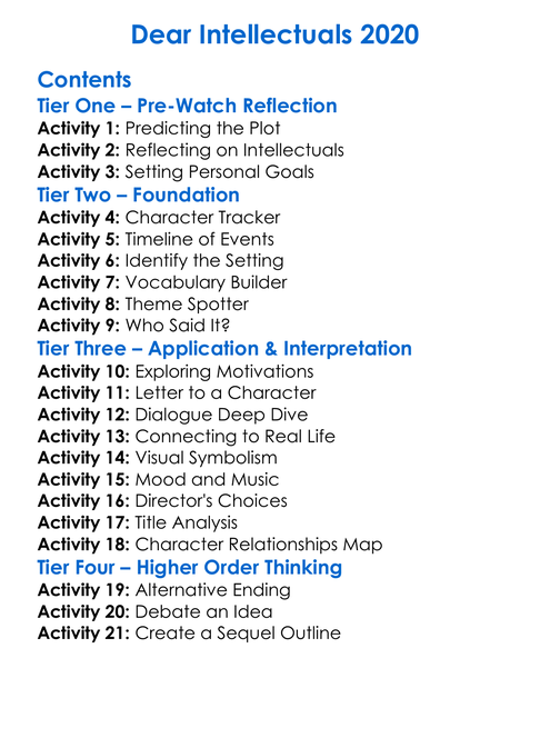 Dear Intellectuals 2020 Worksheet Activity Booklet