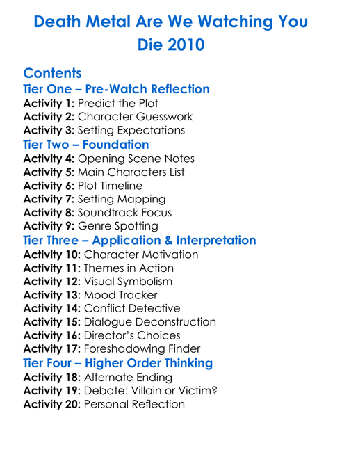 Death Metal Are We Watching You Die 2010 Worksheet Activity Booklet