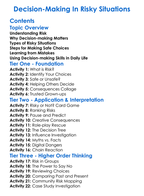 Decision-Making In Risky Situations Worksheet Activity Booklet