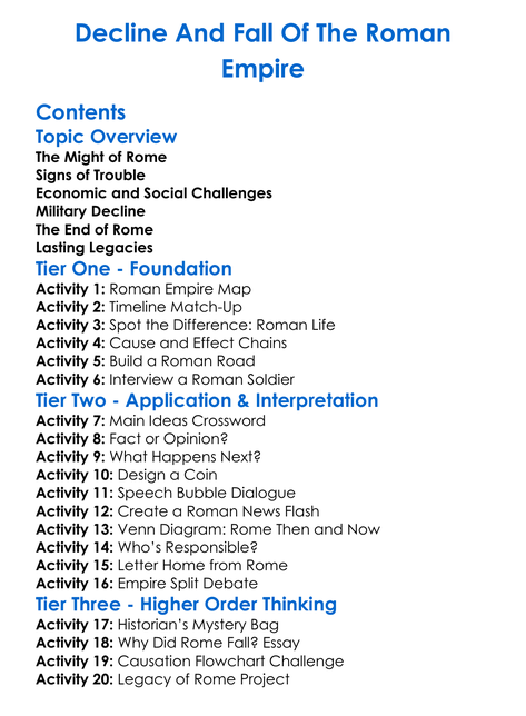 Decline And Fall Of The Roman Empire Worksheet Activity Booklet