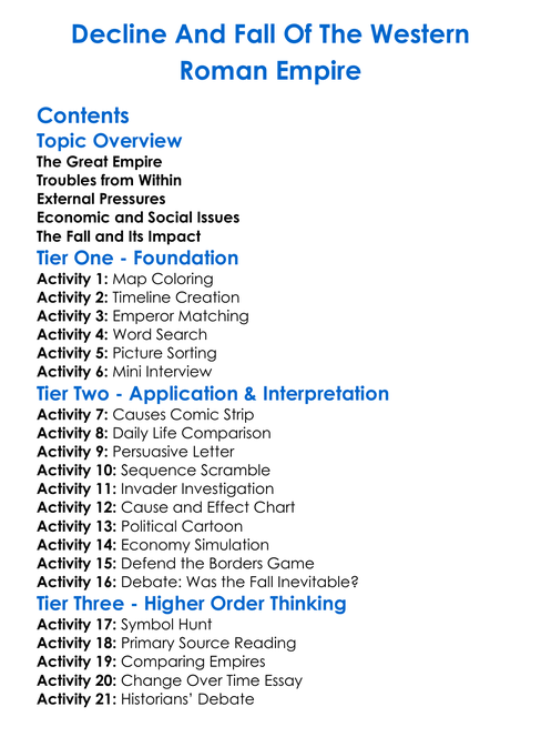Decline And Fall Of The Western Roman Empire Worksheet Activity Booklet
