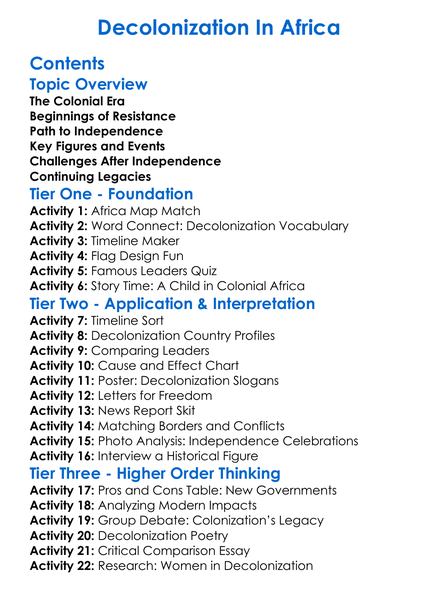 Decolonization In Africa Worksheet Activity Booklet
