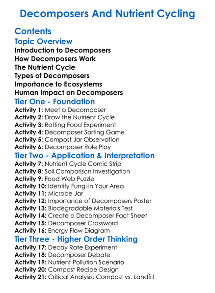 Decomposers And Nutrient Cycling Worksheet Activity Booklet
