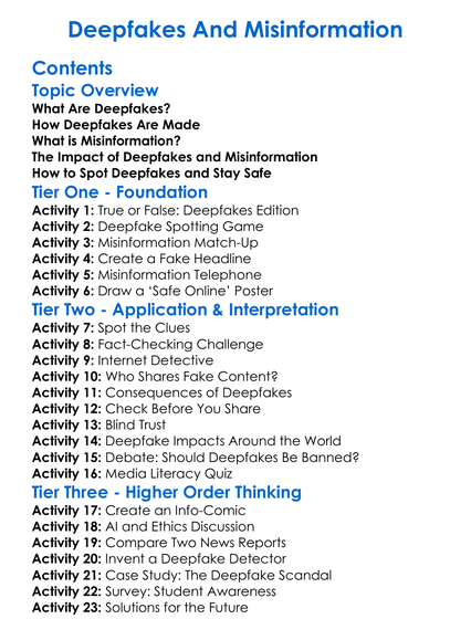 Deepfakes And Misinformation Worksheet Activity Booklet