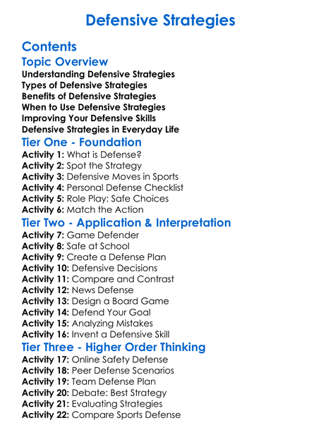 Defensive Strategies Worksheet Activity Booklet