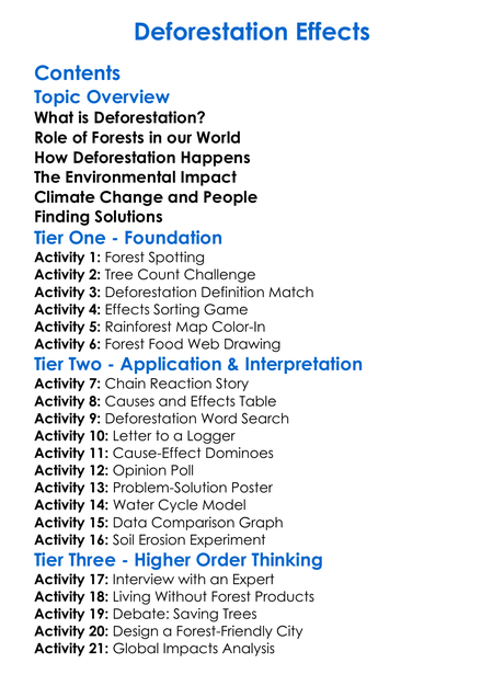 Deforestation Effects Worksheet Activity Booklet