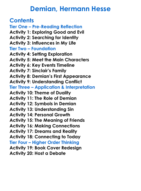 Demian Hermann Hesse Worksheet Activity Booklet