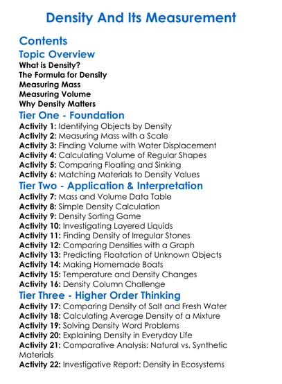 Density And Its Measurement Worksheet Activity Booklet