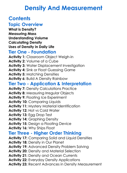Density And Measurement Worksheet Activity Booklet