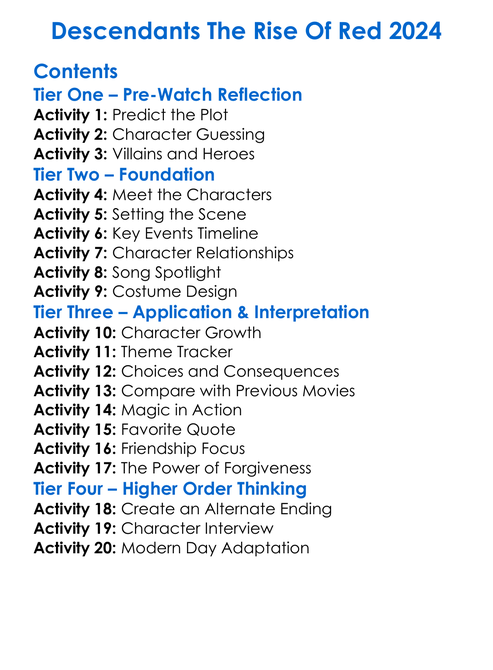 Descendants The Rise Of Red 2024 Worksheet Activity Booklet