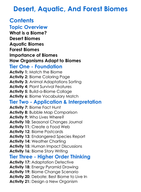 Desert Aquatic And Forest Biomes Worksheet Activity Booklet