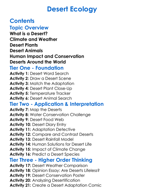 Desert Ecology Worksheet Activity Booklet