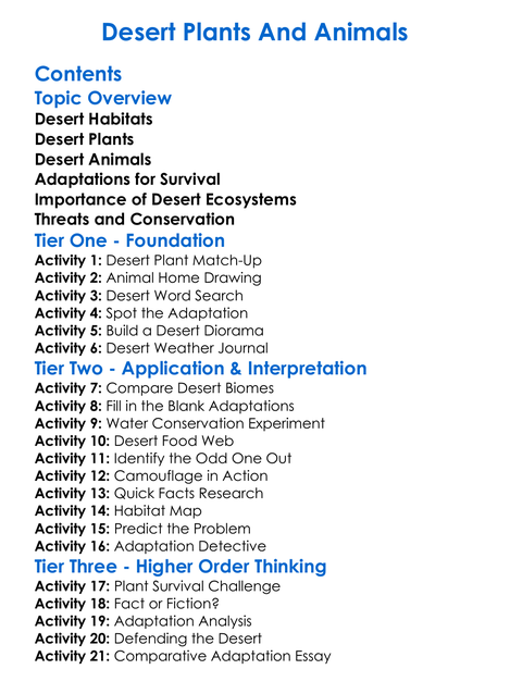 Desert Plants And Animals Worksheet Activity Booklet