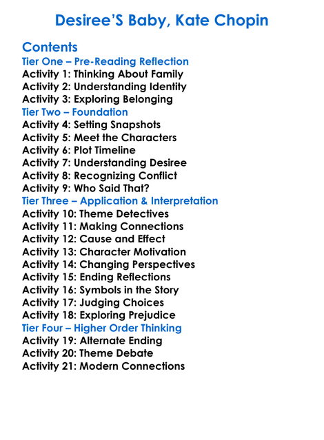 Desirees Baby Kate Chopin Worksheet Activity Booklet