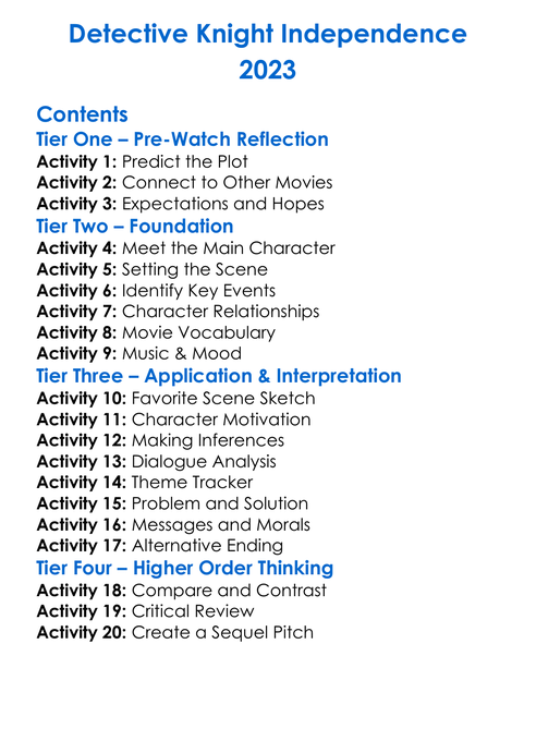 Detective Knight Independence 2023 Worksheet Activity Booklet