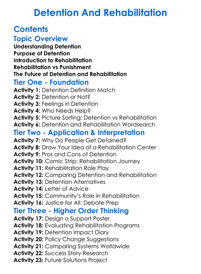 Detention And Rehabilitation Worksheet Activity Booklet