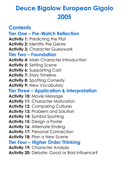 Deuce Bigalow European Gigolo 2005 Worksheet Activity Booklet