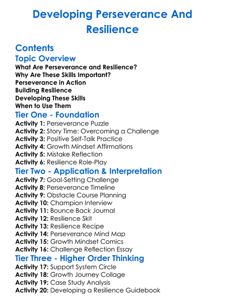 Developing Perseverance And Resilience Worksheet Activity Booklet