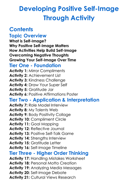 Developing Positive Self-Image Through Activity Worksheet Activity Booklet