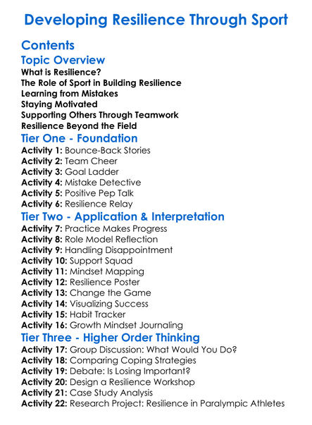 Developing Resilience Through Sport Worksheet Activity Booklet