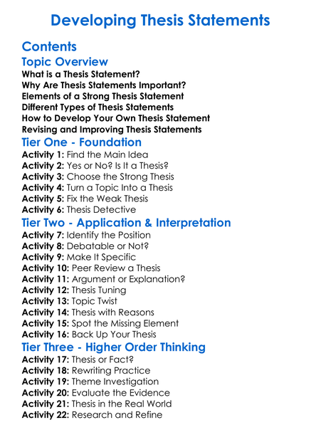Developing Thesis Statements Worksheet Activity Booklet
