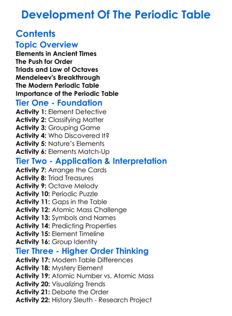 Development Of The Periodic Table Worksheet Activity Booklet