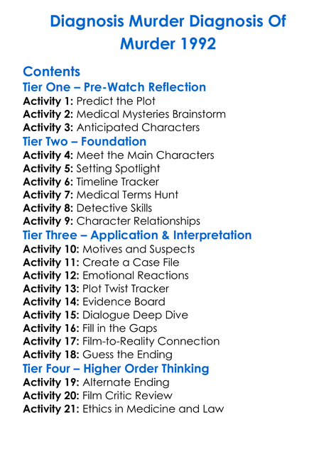 Diagnosis Murder Diagnosis Of Murder 1992 Worksheet Activity Booklet