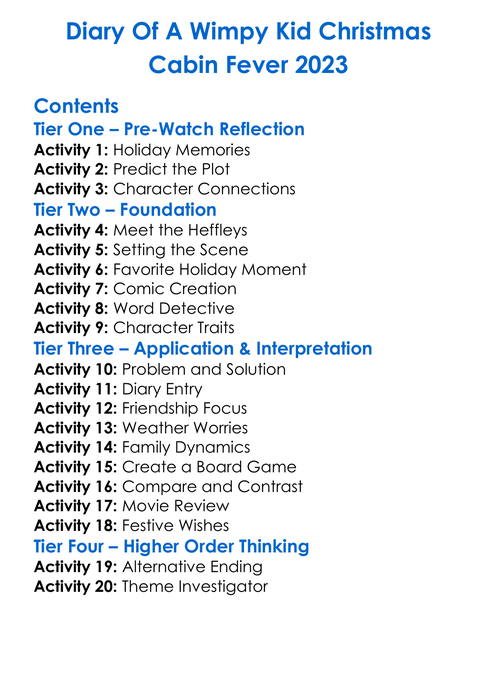 Diary Of A Wimpy Kid Christmas Cabin Fever 2023 Worksheet Activity Booklet