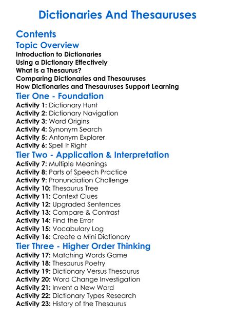 Dictionaries And Thesauruses Worksheet Activity Booklet