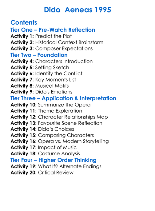 Dido Aeneas 1995 Worksheet Activity Booklet