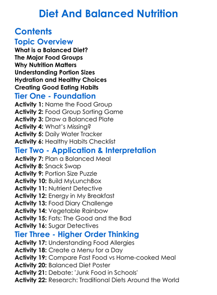 Diet And Balanced Nutrition Worksheet Activity Booklet