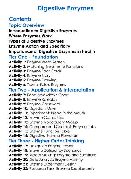 Digestive Enzymes Worksheet Activity Booklet
