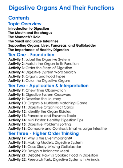 Digestive Organs And Their Functions Worksheet Activity Booklet