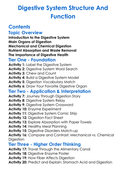 Digestive System Structure And Function Worksheet Activity Booklet