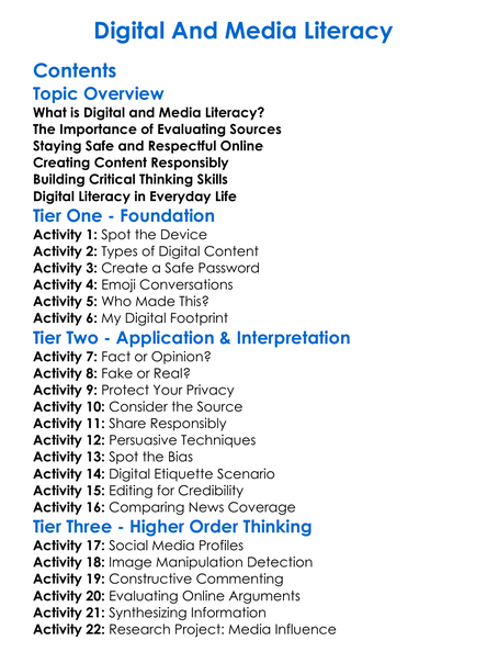 Digital And Media Literacy Worksheet Activity Booklet