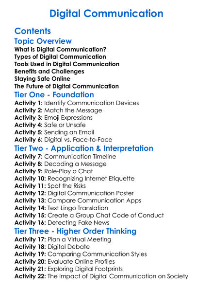 Digital Communication Worksheet Activity Booklet