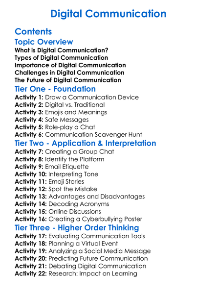 Digital Communication Worksheet Activity Booklet