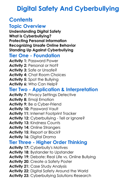 Digital Safety And Cyberbullying Worksheet Activity Booklet