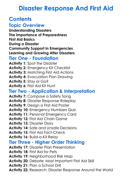 Disaster Response And First Aid Worksheet Activity Booklet