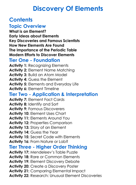 Discovery Of Elements Worksheet Activity Booklet