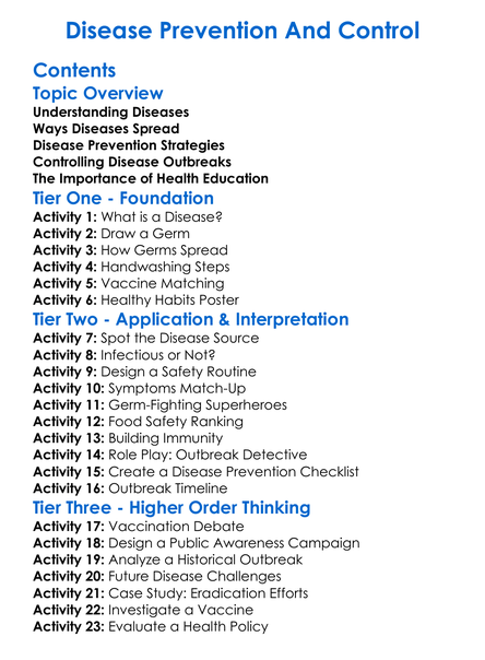Disease Prevention And Control Worksheet Activity Booklet