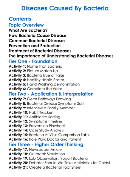 Diseases Caused By Bacteria Worksheet Activity Booklet