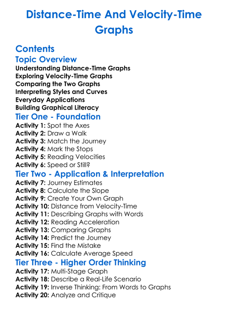 Distance-Time And Velocity-Time Graphs Worksheet Activity Booklet