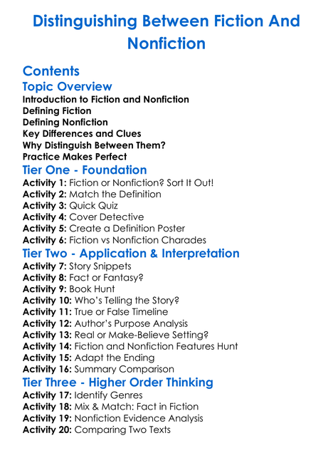 Distinguishing Between Fiction And Nonfiction Worksheet Activity Booklet