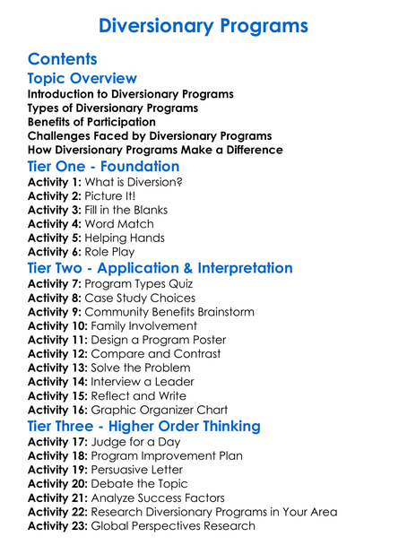 Diversionary Programs Worksheet Activity Booklet