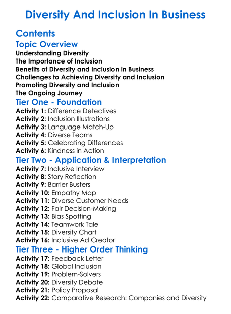Diversity And Inclusion In Business Worksheet Activity Booklet