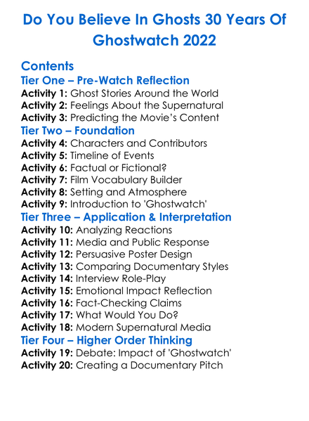 Do You Believe In Ghosts 30 Years Of Ghostwatch 2022 Worksheet Activity Booklet