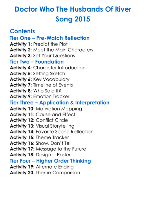 Doctor Who The Husbands Of River Song 2015 Worksheet Activity Booklet