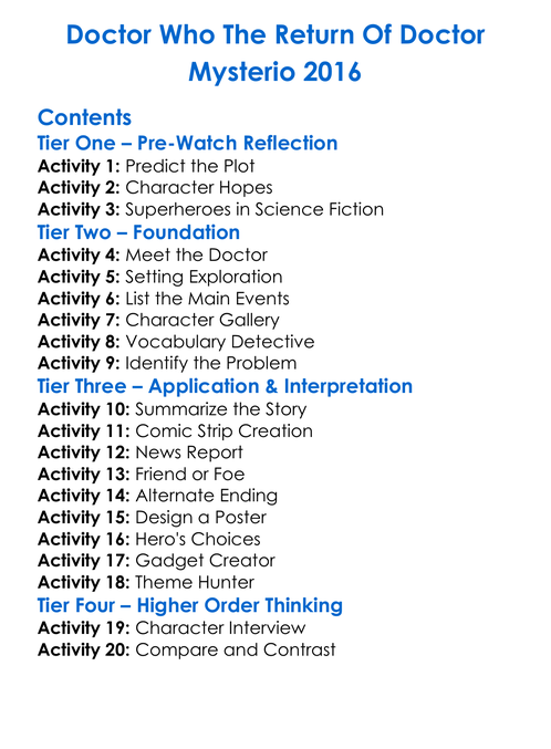Doctor Who The Return Of Doctor Mysterio 2016 Worksheet Activity Booklet